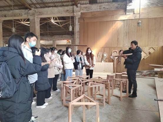 2月23日,由任课教师带队、辅导员配合,产品艺术213班《家具设计》、艺术设计220班《庭院设计》等6门课程200余名学生前往成都唯意装饰有限公司、四川省百合居装饰工程有限公司、成都臻品智造家具有限公司、成都沙龙家具制造有限公司、成都鑫艺彩印包装有限公司等校企合作企业,将课堂搬进企业、搬进项目现场开展了一堂生动的现场教学,将理论内容与实践学习相结合。学院总支书记刘登秀、辅导员孔超、王晓俊跟随其中一个班级前往沙龙家具公司,旁听教学并与企业对接学生就业等工作。