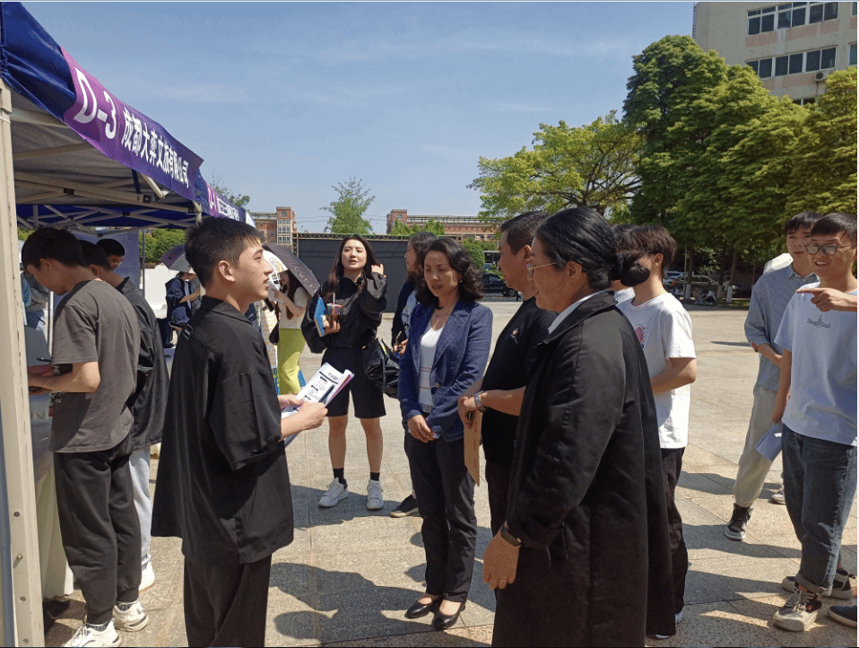 当日,成都大弈文化传媒有限公司还参加了我校2023届毕业生夏季双选会,提供了自媒体运营师、环境艺术设计师、平面设计师等7个岗位需求。会后,张江婴书记和张红总经理一行亲临双选会现场,了解招聘情况,调研企业需求及毕业生就业情况,助力毕业生签约就业。