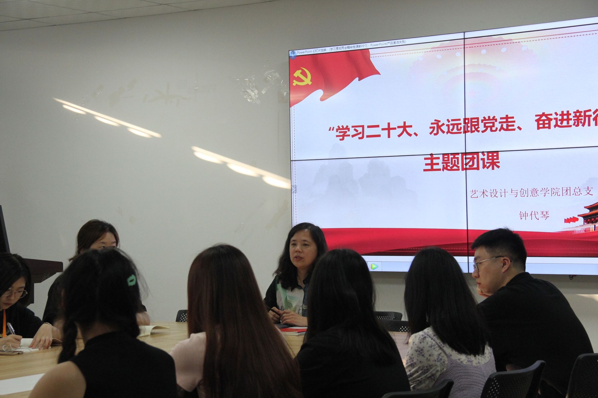 5月18日,艺术设计与创意学院团总支在北苑产教大楼B205开展 “学习二十大 永远跟党走 奋进新征程”主题团课,学院团总支书记钟代琴主讲,辅导员孔超、团员代表、入团积极分子共50余人参加学习。