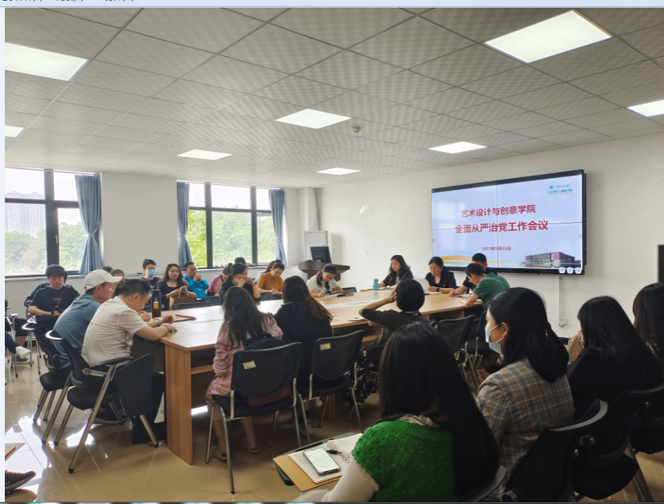 5月23日,艺术设计与创意学院在产教大楼B205会议室召开2023年全面从严治党工作会议。学院全体教师参加,党总支书记刘登秀主持会议。