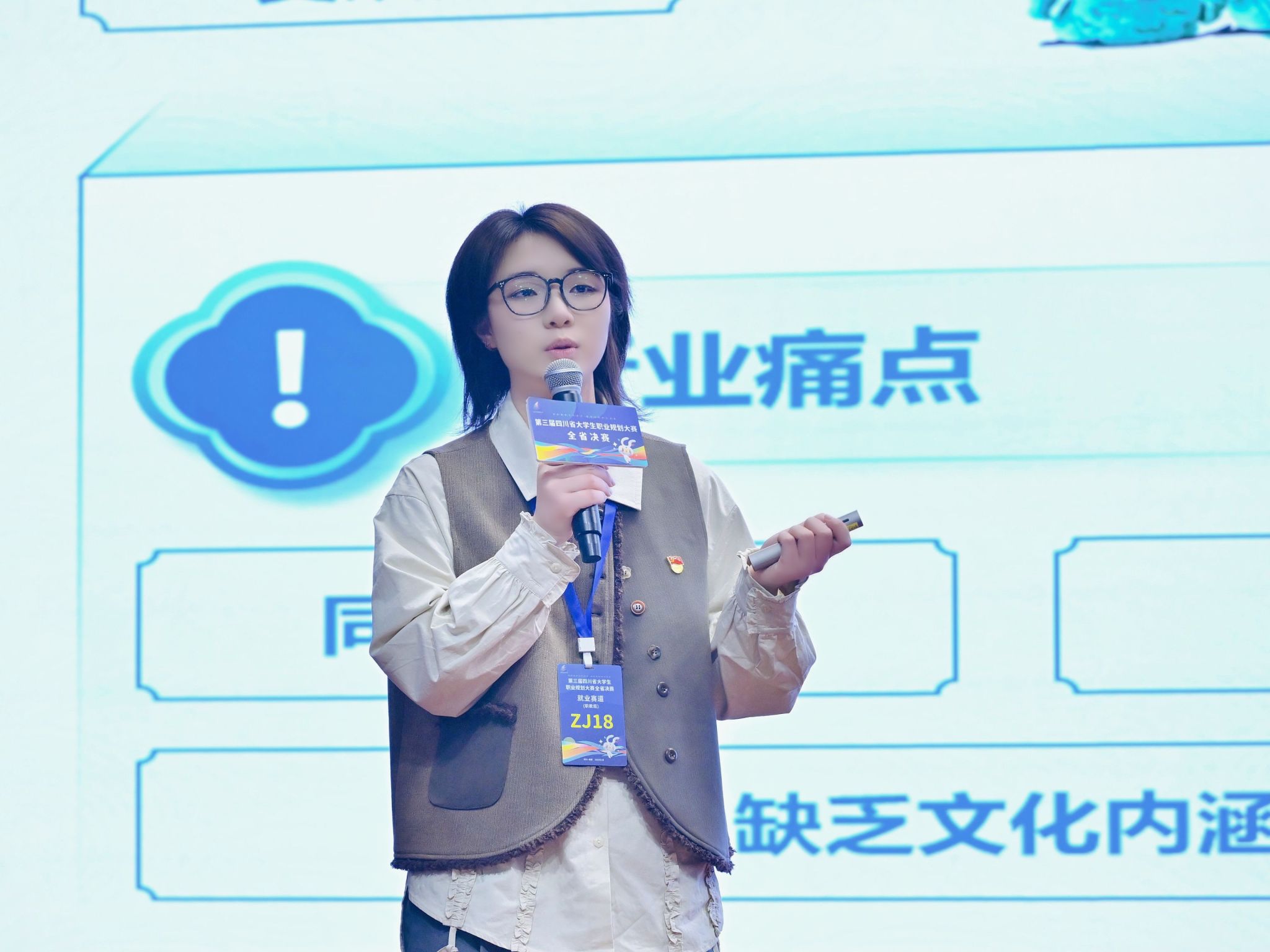 决赛现场,艺术设计与创意学院产品艺术设计23级学子曾子芮凭借扎实的专业功底、清晰的职业目标和出色的综合能力脱颖而出,充分展现了成轻大创艺学子昂扬向上、力争一流的精神风貌和德才兼备、知行合一的职业素养,彰显了成轻大学子的专业素养与青春风采。曾子芮同学以成为巴蜀非遗文创产品设计师为职业目标,深耕巴蜀区域非遗文化的传承与保护领域,立志将精湛的巴蜀传统技艺与非遗文化内涵,转化为兼具实用性与审美性的文创产品,用设计语言让巴蜀非遗之美走近生活、走进市场、走向世界。其清晰的职业规划、坚定的职业追求,充分展现了成轻大创艺学子自觉传播中华优秀传统文化、守正创新、吃苦耐劳的优良职业素养,最终成功斩获大赛就业赛道铜奖。